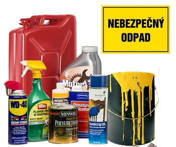 - Aku baterie, ojeté pneumatiky, suché galvanické články, plechovky od barev nebo se zbytky barev a laků, nádoby od motorových olejů, zahradní chemie, ředidla, vyřazené elektrozařízení – např. lednice, mrazáky, televizory, monitory, ostatní elektrospotřebiče, zářivky, výbojky apod.